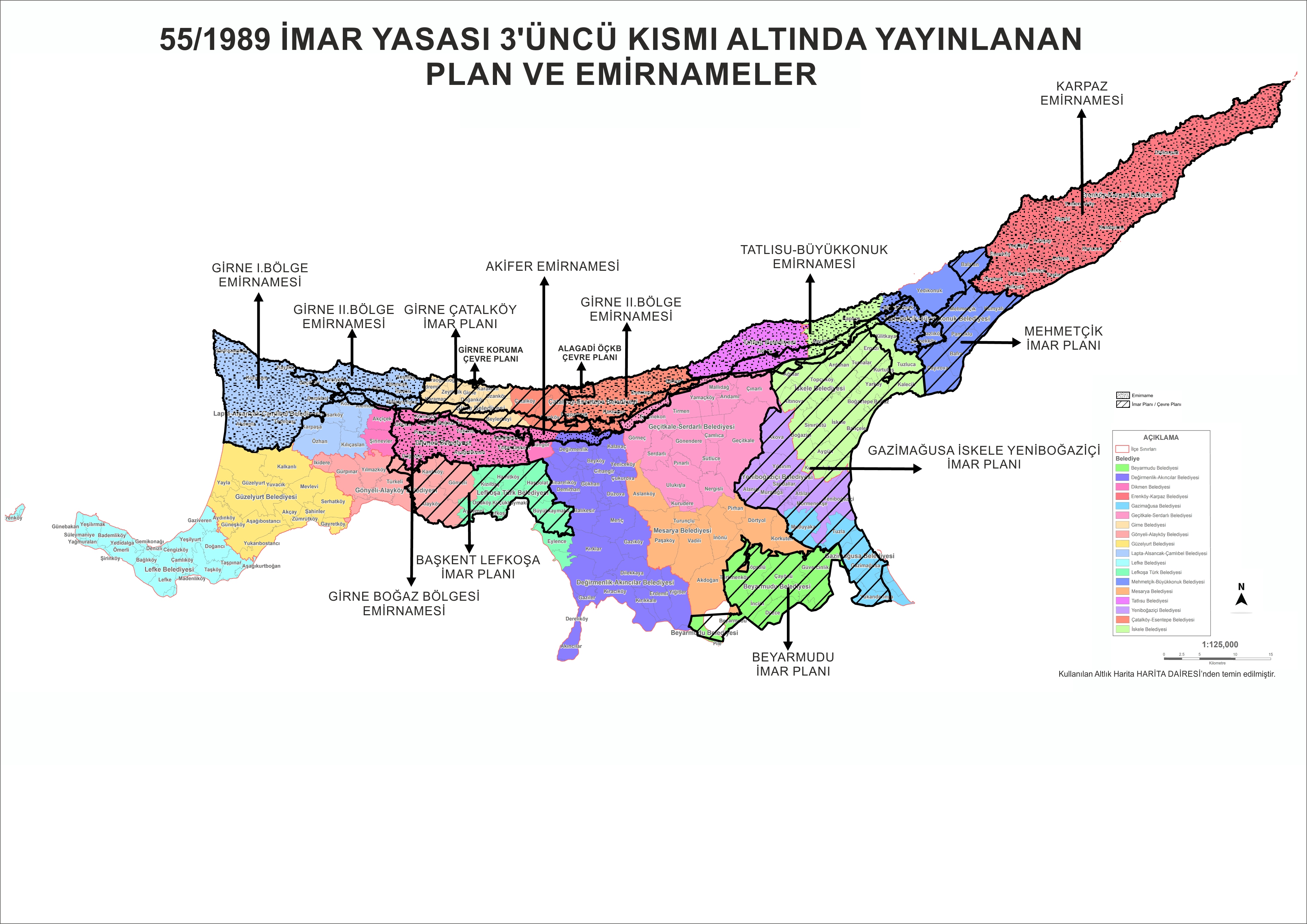 55/1989 İmar Yasası gereği yasada gelişme olarak tanımlanan her türlü faaliyet Planlama onayına bağlı olup, Planlama Onayı alınmadan hiçbir taşınmaz mal geliştirilemez. Planlama Onayına tabii bölgelerde Planlama Onayı alındıktan sonra KTMMOB vize bürolarından vize alınmasının ardından inşaat ruhsatı için yetkili makama başvurulur. Yetkili Makam, İlçe Belediyelerinde ve Gönyeli Alayköy Belediyesi’nde belediyeler, diğer belediyelerde ise bağlı bulundukları ilçelerdeki Kaymakamlıklardır.